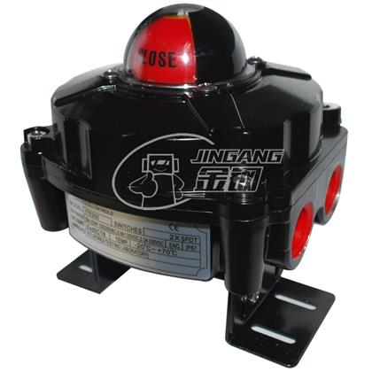 JGAPL系列阀位反馈装置检测阀位转角位移,通过同轴连接件或反馈杆使传动轴产生旋转,让凸轮触动微型开关,从而使开关组件的触点闭合或断开,通过接线端子向外部传送开关量信号,并通过指示器就地显示。