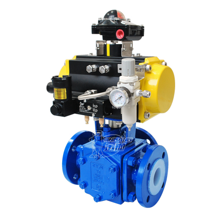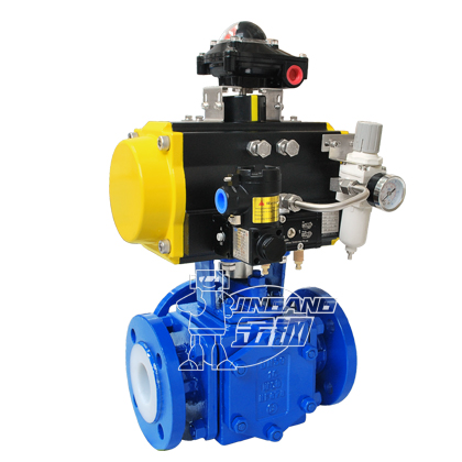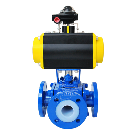 气动三通衬氟球阀